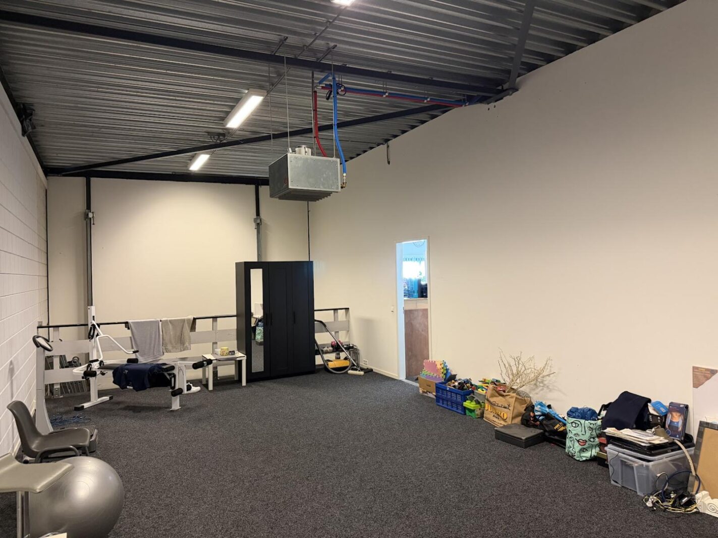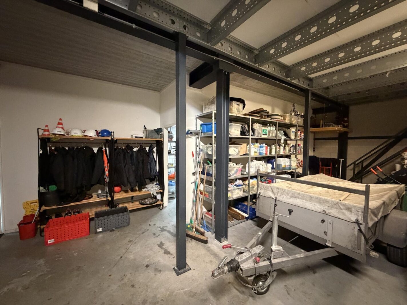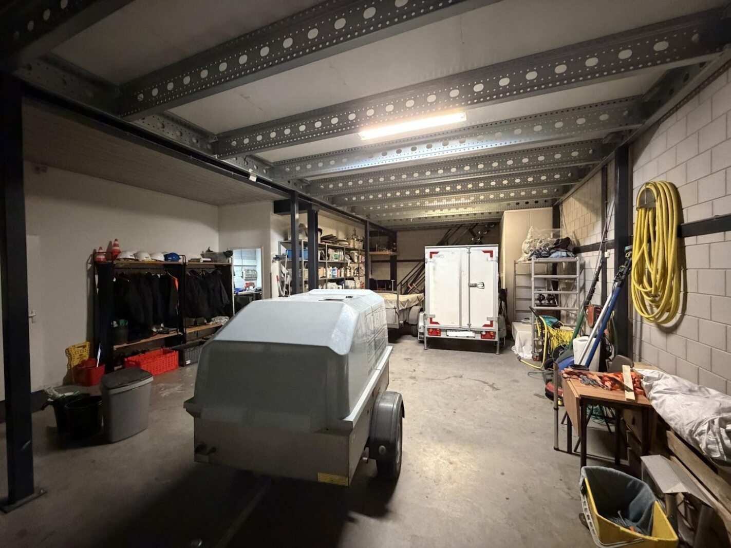 Betonvloer, Heater, Overhead deuren, Pantry, Toilet