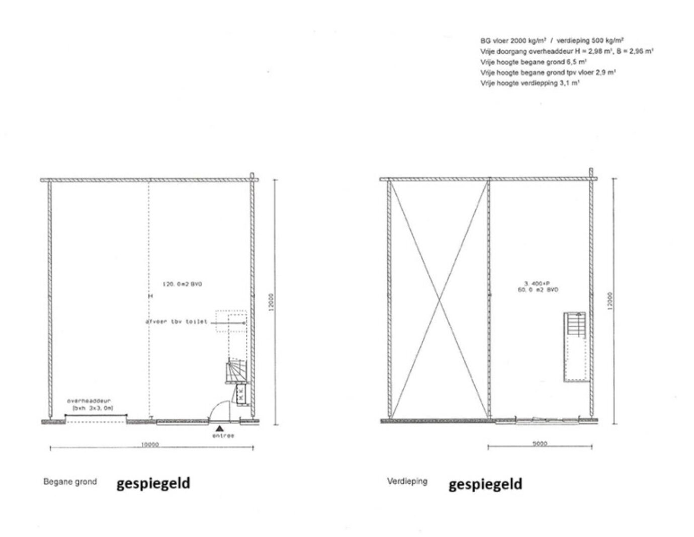 - vloerbelasting 500 kg/m²