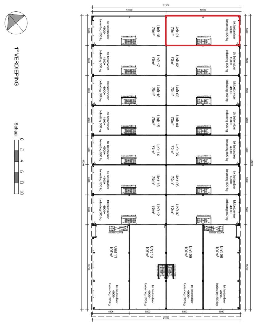 - vloerbelasting 1.000 kg/m²