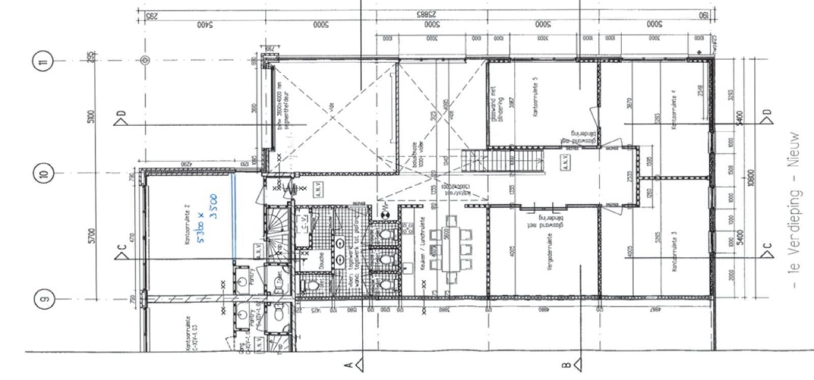 - eerste verdieping : ca. 196 m² kantoorruimte