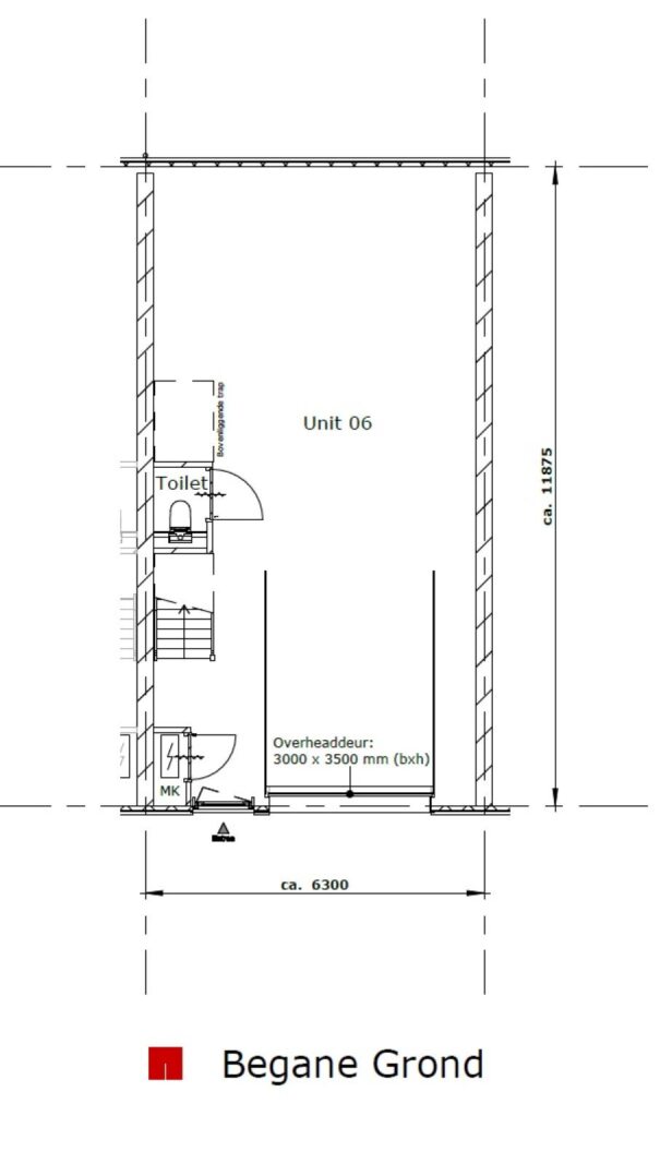 - Betonvloer, Overhead deuren, Pantry, Toilet