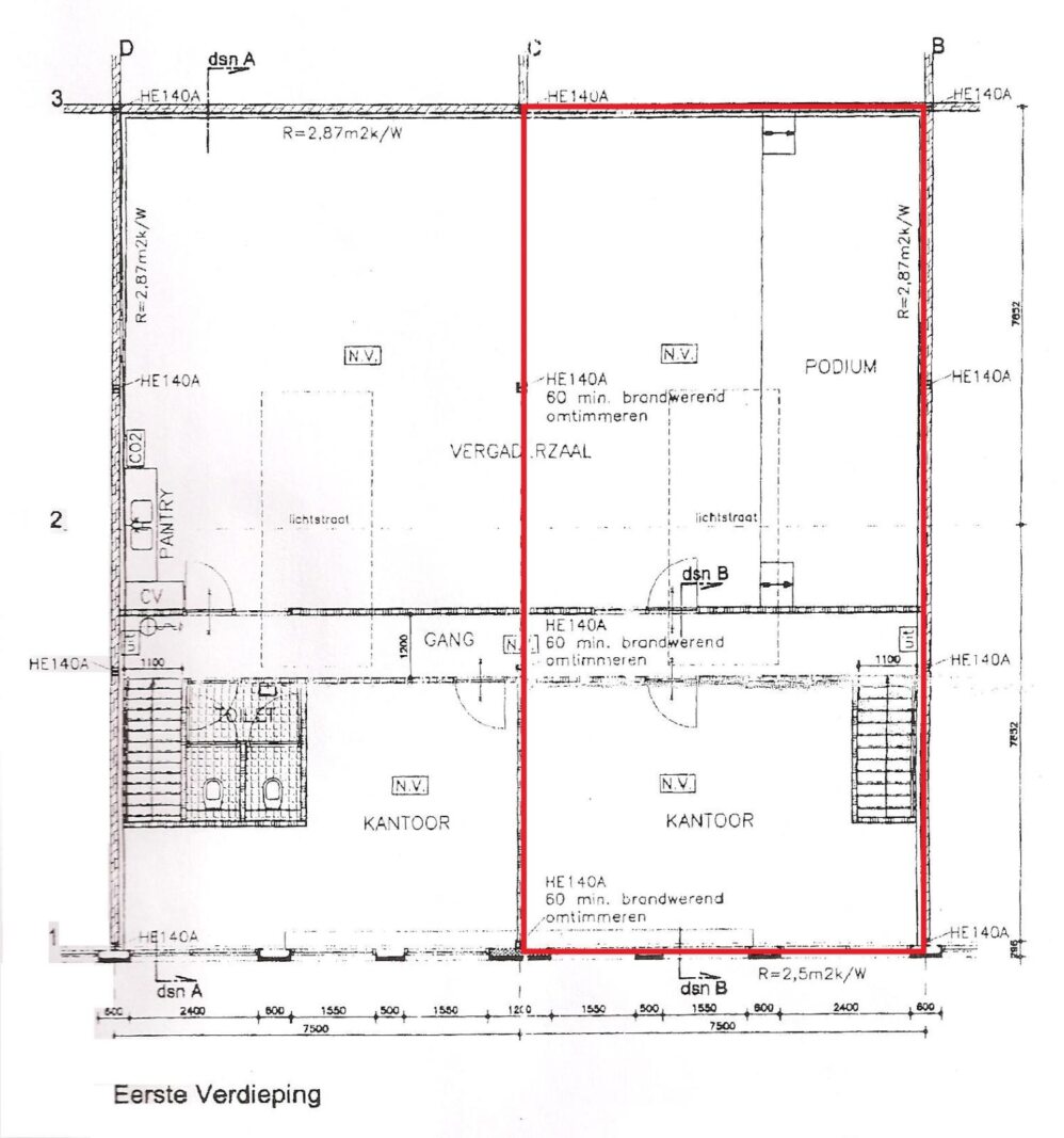 - eerste verdieping : ca. 110 m² bvo kantoor-/showroomruimte